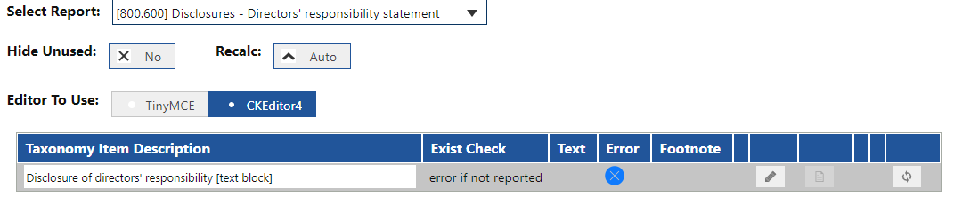 Let's walk through how to complete a text-based report, such as director's responsibility statement. The below examples use the CKEditor4.